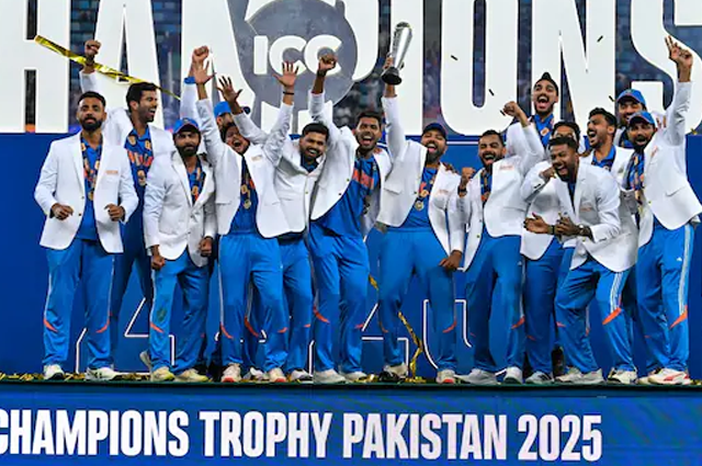 India won the ICC Champions Trophy 2025 final, defeating New Zealand by four wickets at the Dubai International Cricket Stadium on Sunday.